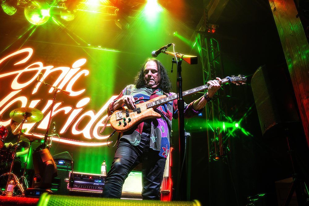 Berklee-trained co-founder of Sonic Joyride. The backbone of the band — rhythmically locked, melodically inventive, with 30+ years of road behind him.